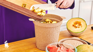 We designed The Compost Collector® to sit on your kitchen counter. The Compost Collector® stores food scraps and remains sturdy until trash day. Seal it with the molded pulp lid and toss it in the green bin.